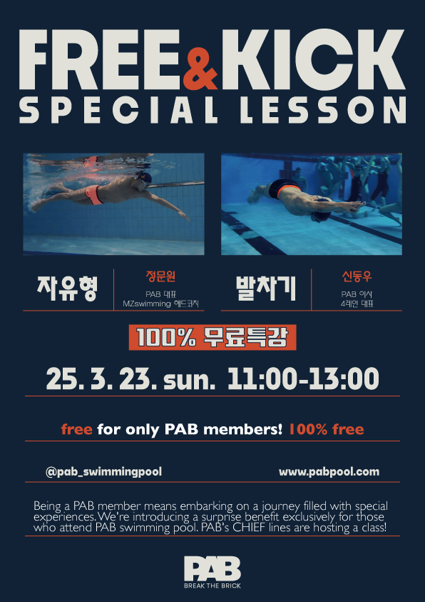 • 대상 | PAB 수영장 등록 '성인' 회원 (키즈 불가)